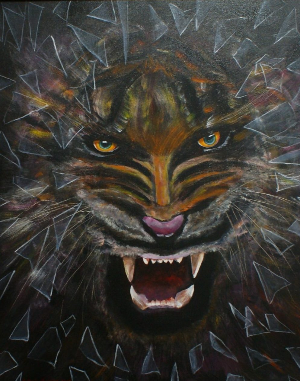 Een globale impressie van het schilderij "Briesende leeuw" 40x50cm.