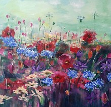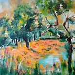 Een globale impressie van het schilderij "In de berm" 100x100cm.