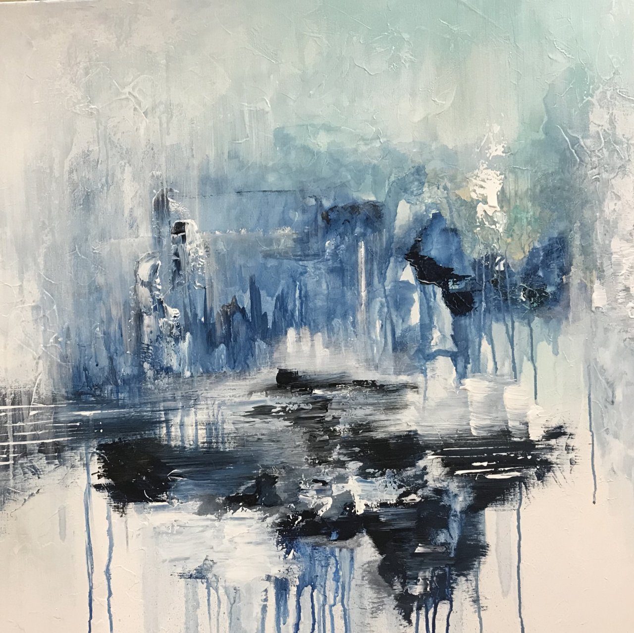 Een globale impressie van het schilderij "Cloudy" 80x80cm.