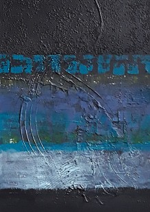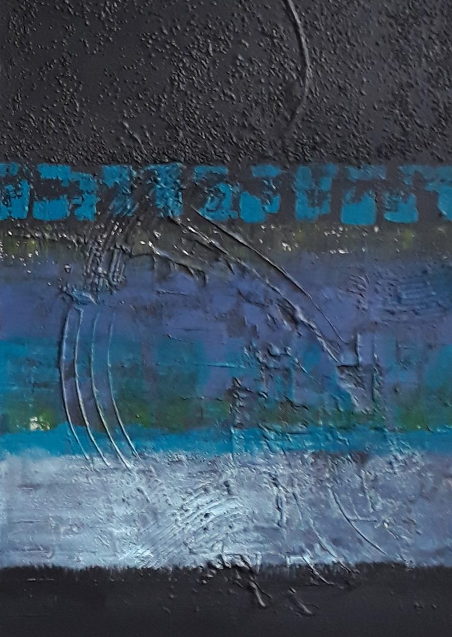 Een globale impressie van het schilderij "Blue-Black-Beauty" 100x70cm.