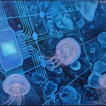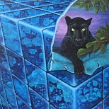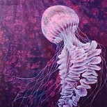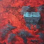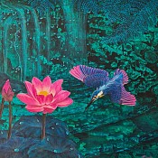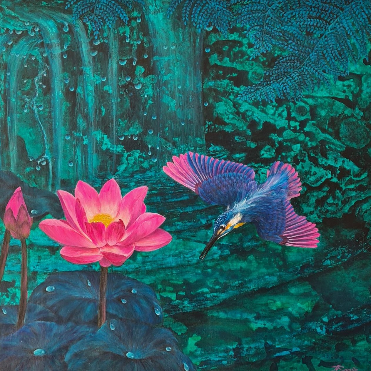 Een globale impressie van het schilderij "Bird" 80x80cm.