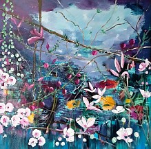 Een globale impressie van het schilderij "Tuin" 100x100cm.