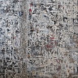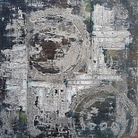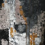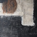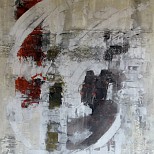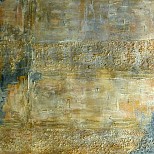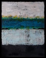 Rustig, doch kleurig schilderij, waarin de felle kleur blauw goed uitkomt.