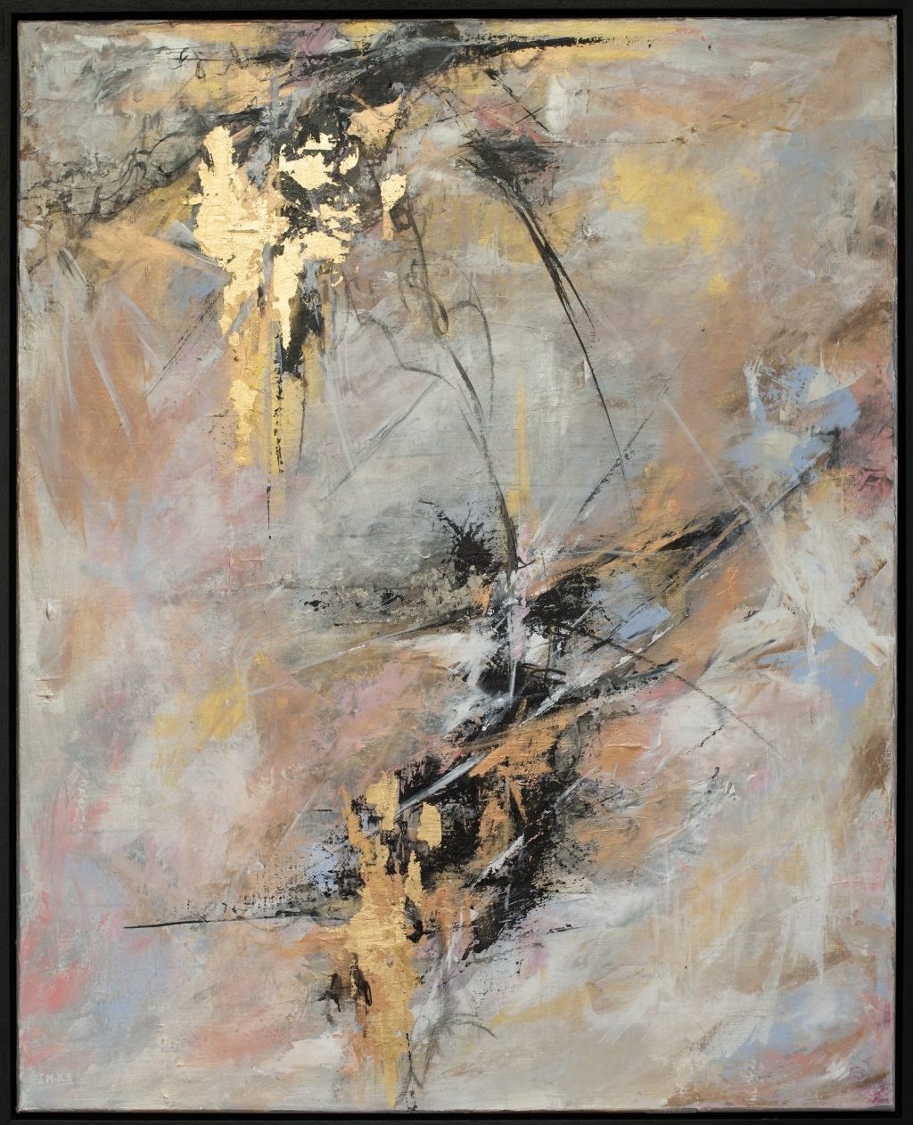 Gouden regen. Mixed media. Verwerkt bladgoud in schilderij.
