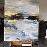 Mixed media schilderij op canvas 3 D doek. Zijkant zwart afgewerkt. Afwerking mat vernis laag.+ ophangsysteem.