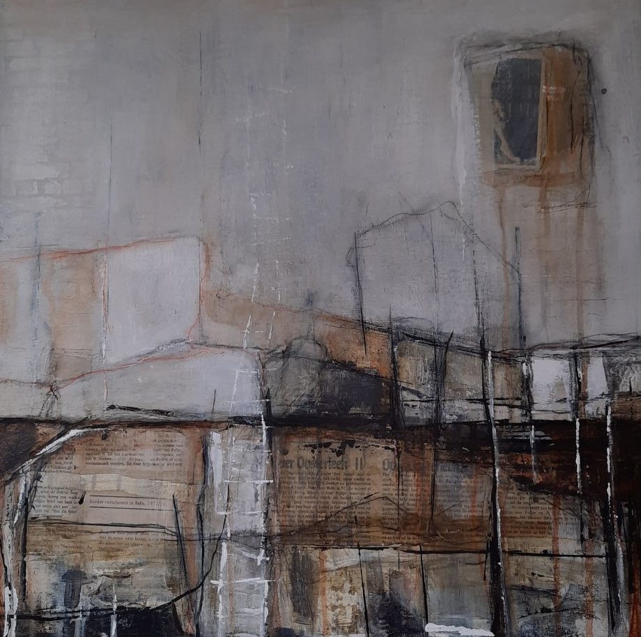 Een globale impressie van het schilderij "Words" 50x50cm.