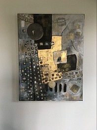 STREETS of New York. Mixed media .verwerking met bladgoud. De straten van New York .helicopter view. Abstract work.