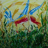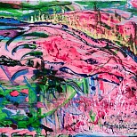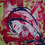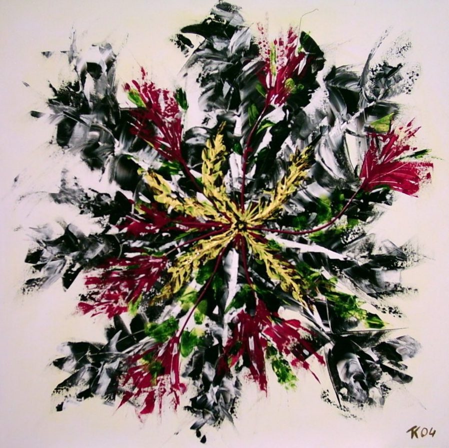 Een globale impressie van het schilderij "Kelk" 100x100cm.
