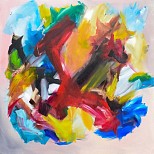 Een globale impressie van het schilderij "Shake it up baby" 100x100cm.