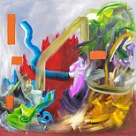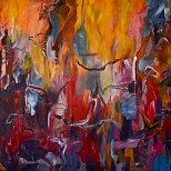 Een globale impressie van het schilderij "The morning after carnaval" 80x100cm.