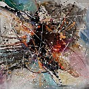 Acryl abstract werk, op canvas 3D doek. Zijkant zwart afgewerkt. Afwerking mat vernis laag.