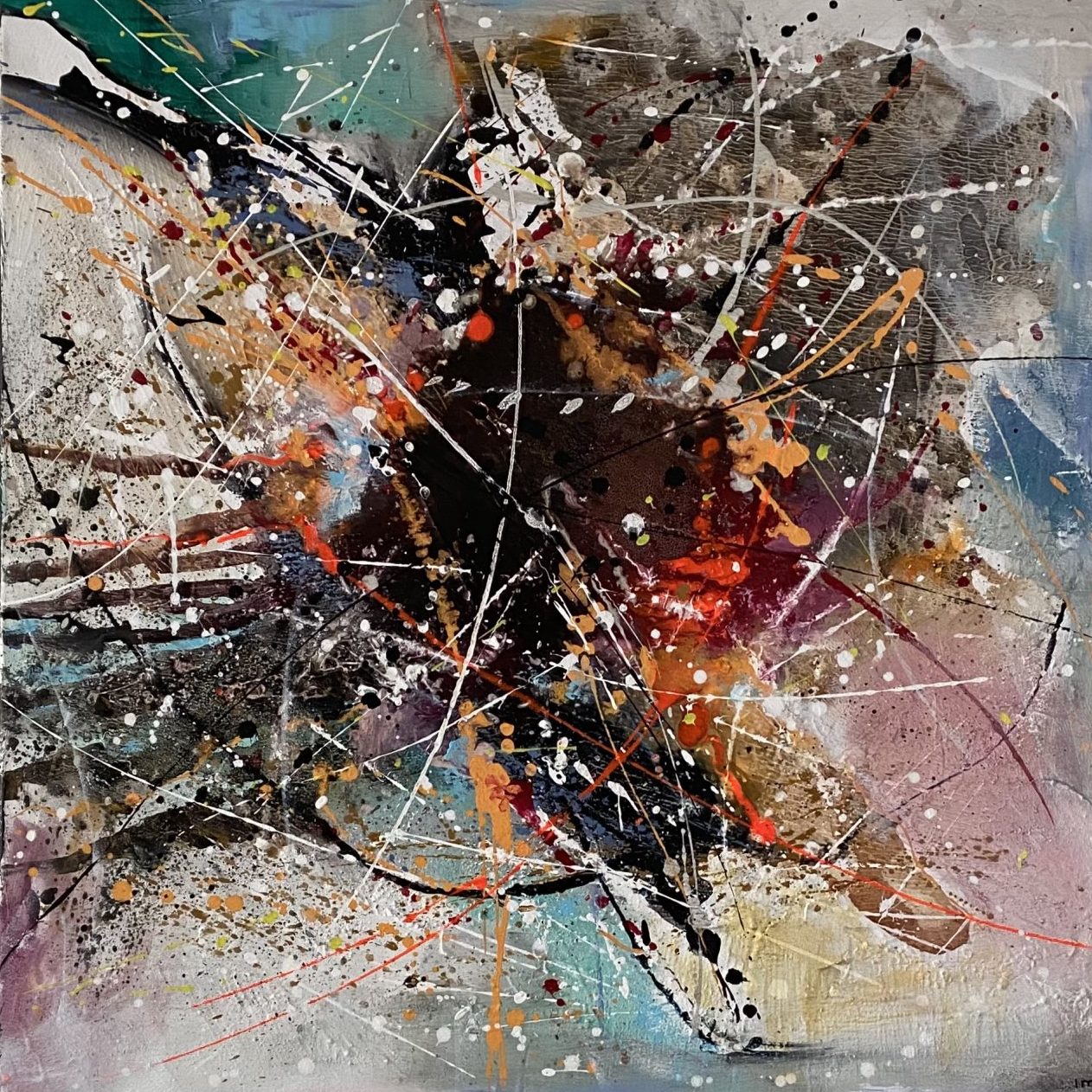 Een globale impressie van het schilderij "Color explosion" 60x60cm.