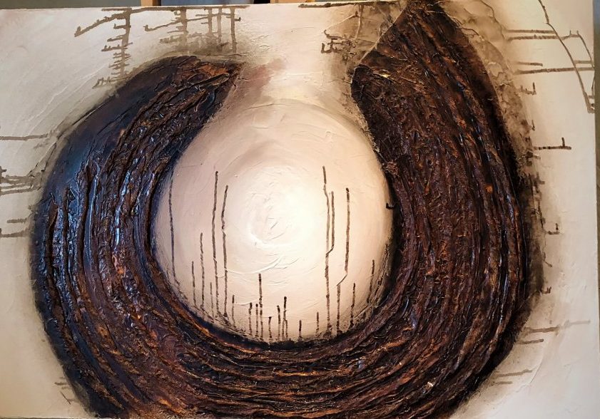 Gemaakt met pasta- Roestpasta-Acryl-Powertex-Bister en kant,
