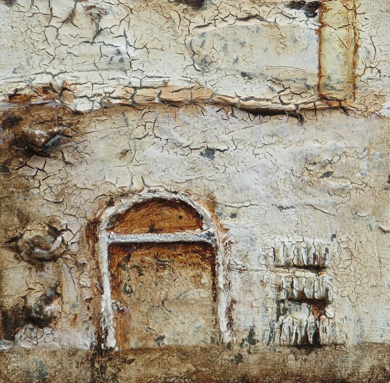 Een globale impressie van het schilderij "Poortje 1" 12x12cm.