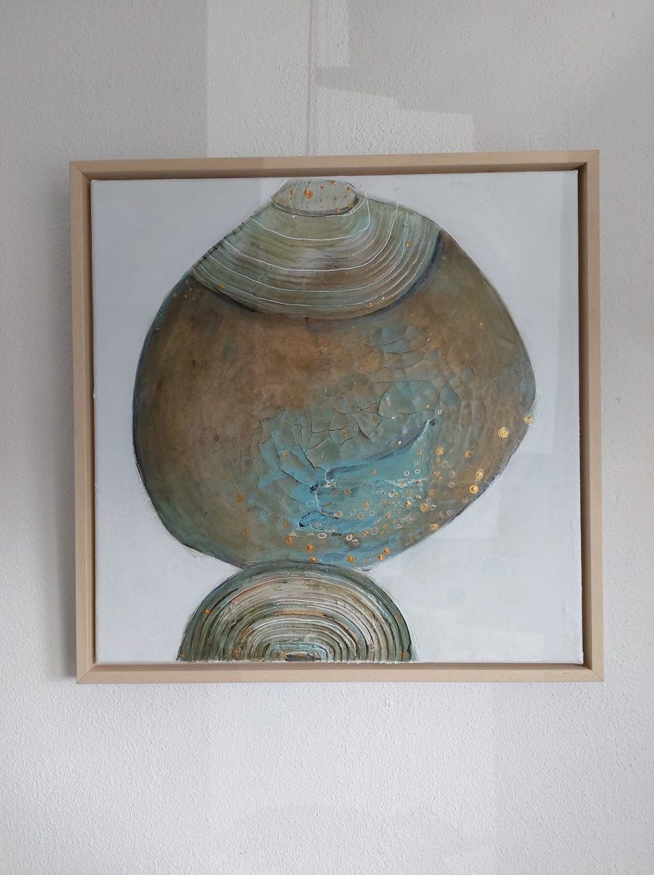 Ik zie dit schilderij in een pratijkruimte hangen of in een yogaruimte. Een plek die rust uitstraald.