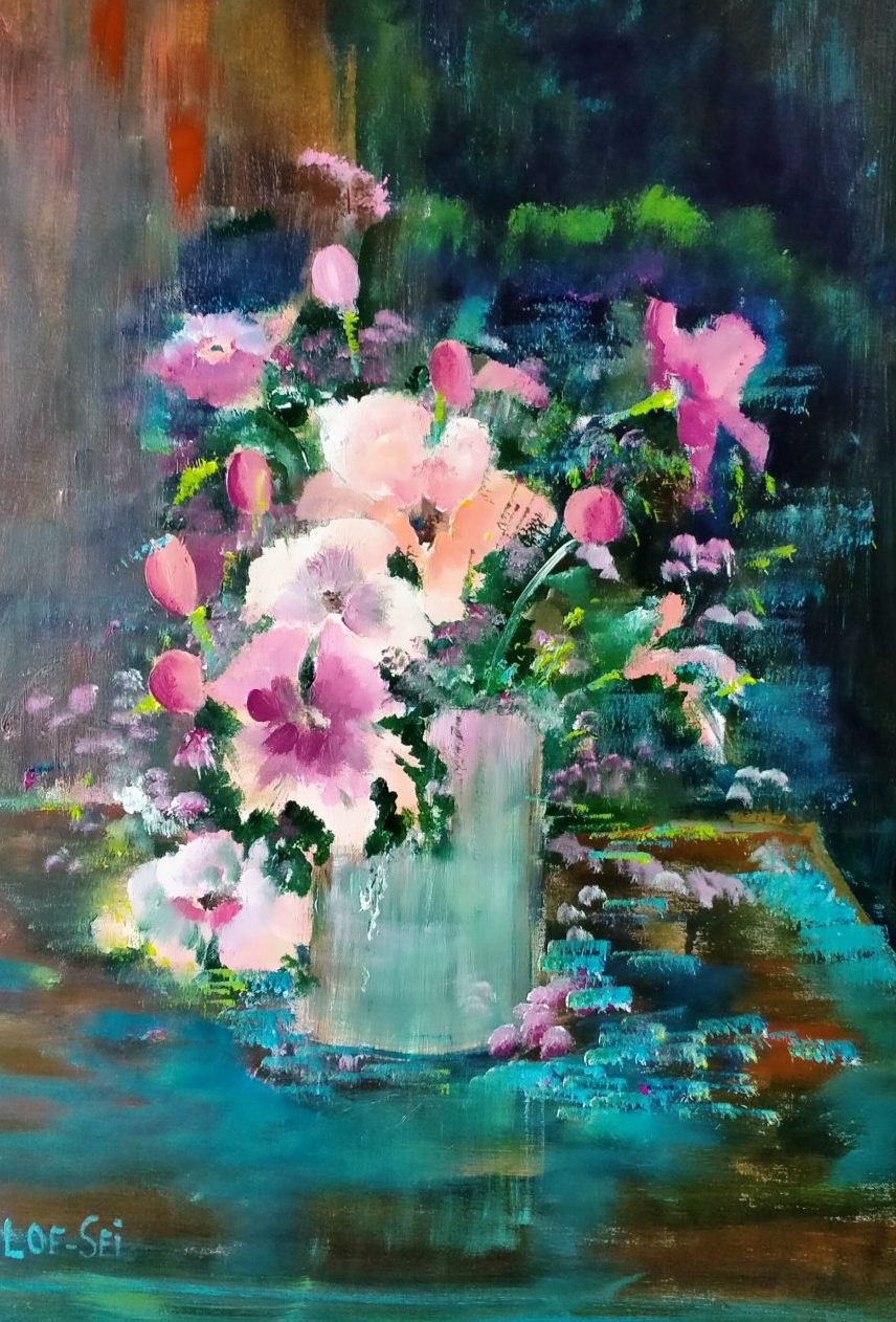 Een globale impressie van het schilderij "Modern stilleven" 50x70cm.