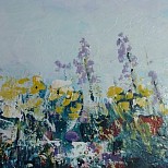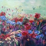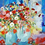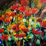 Een globale impressie van het schilderij "Romantisch tafereel" 100x100cm.