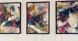 Een globale impressie van het schilderij "3 luik" 150x70cm.