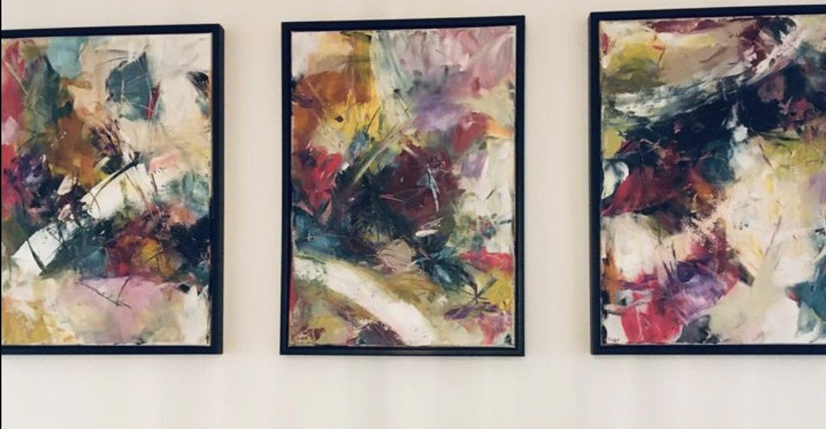 3 Luik, acryl op canvas doeken + zwarte lijsten