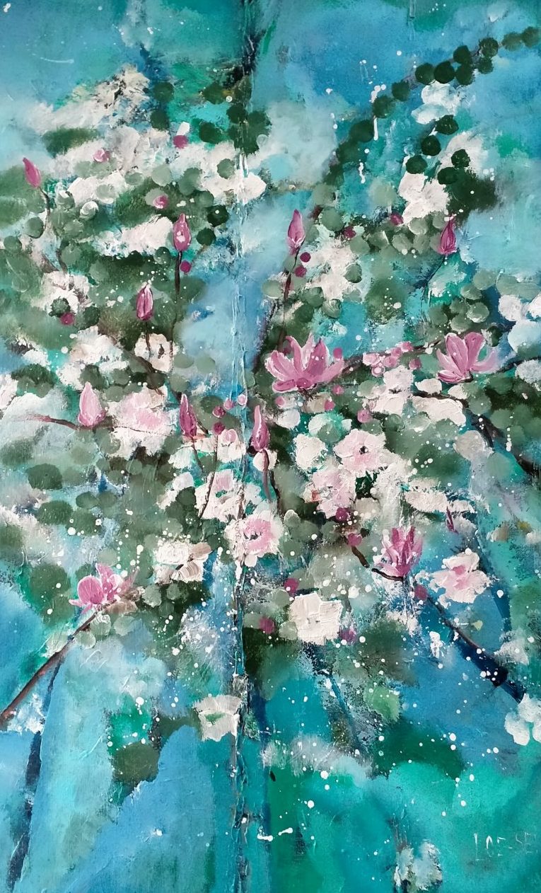 Een globale impressie van het schilderij "Bloesem" 115x80cm.