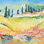 Een globale impressie van het schilderij "Tuinen van Monet" 100x100cm.