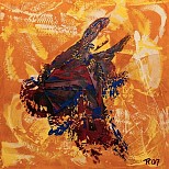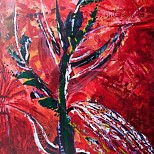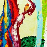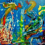 Een globale impressie van het schilderij "Betovering" 100x100cm.