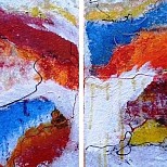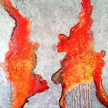 Een globale impressie van het schilderij "Blusher" 100x100cm.