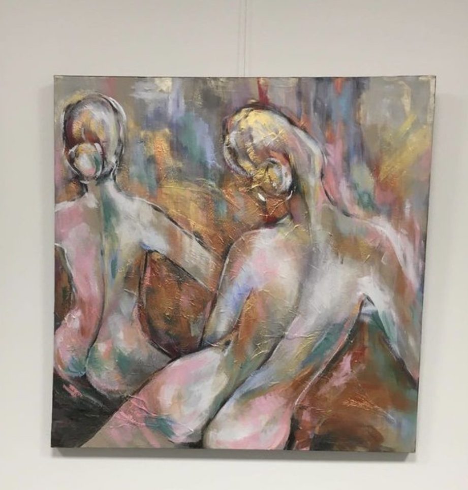 Een globale impressie van het schilderij "Lady,s" 90x90cm.