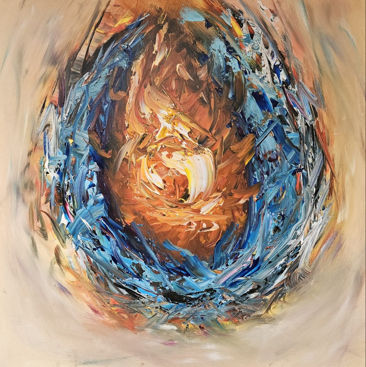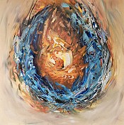 Een globale impressie van het schilderij "Rebirth Flame" 80x80cm.