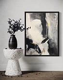 Door me te beperken tot zwart-wit had ik een minimaal palet en ontstonden er vele tinten grijs. Het contrast tussen zwart en wit met daar tussenin de vele tinten grijs vormen een beeld van mysterie, mist, kilheid. Het witte vlak is de beweging in een gedaante van een wolk, een persoon of is het gewoon een wit vlak. Het minimale gebruik van brons brengt warmte in het geheel. Dit werk is het resultaat van samen schilderen met een doel.