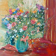 Een globale impressie van het schilderij "Stilleven" 100x100cm.