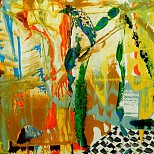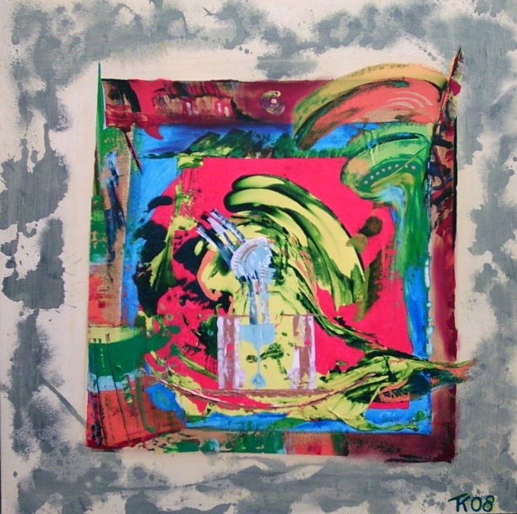 Een globale impressie van het schilderij "Geschiedenis" 100x100cm.