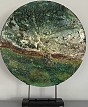 Materie schilderij/ mixed media/ cirkel op standaard, 2 zijdig te gebruiken/ acryl op mdf
