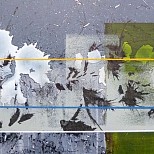 Abstract schilderij, uitgevoerd in Olieverf en Inkt op Linnen Ingelijst (stalen baklijst) en gesigneerd