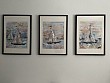 Acryl op papier met pass partout en zwarte lijst. Geïnspireerd door zeil race in Lanzarote. 3 luik . 3 x 50x70