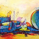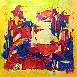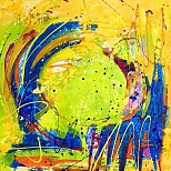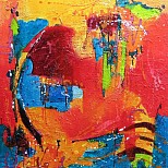 Een globale impressie van het schilderij "Glories Orange" 140x120cm.