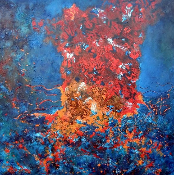 Een globale impressie van het schilderij "Sumatra" 100x100cm.
