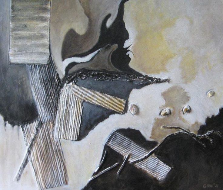 Abstracte improvisatie collage acryl op doek