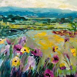 Een globale impressie van het schilderij "Bloemen" 80x80cm.