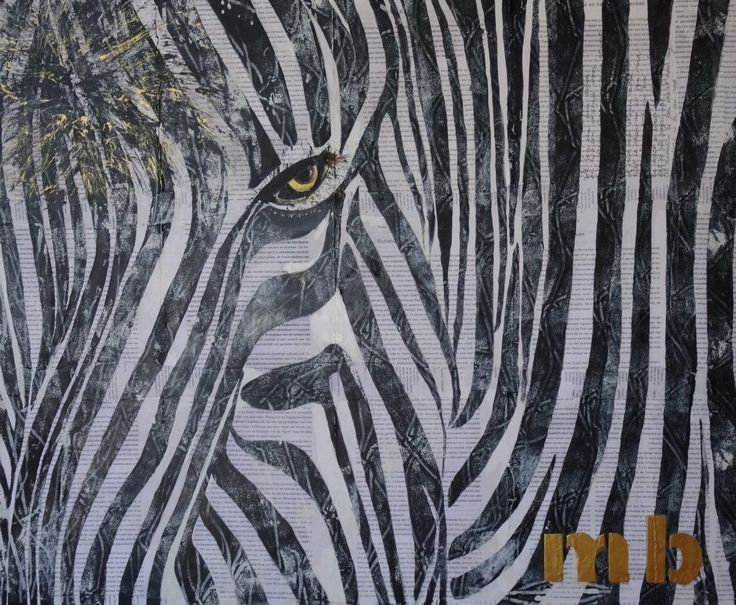 Vanwege zijn bijzondere uiterlijk triggert de zebra mij en inspireert mij tot een schilderij met een eigen toets. Aan het zwart/wit zijn 'gouden' details toegevoegd. De naam komt waarschijnlijk uit het Portugees cebrario of ezebrario, wild paard of wilde ezel (882).