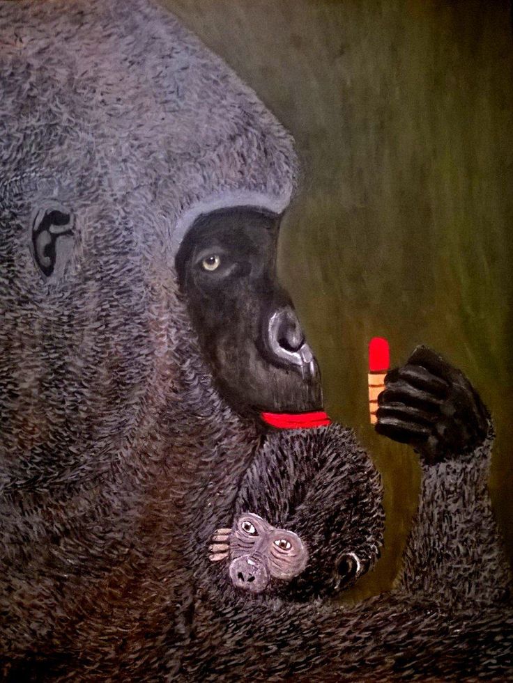Een globale impressie van het schilderij "Mother going out" 70x90cm.