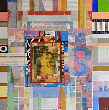 Kleurrijk abstract modern mixed media schilderij, opgebouwd uit diverse lagen (dekkend en transparant) en met verschillende materialen. Geïnspireerd door één van mijn favoriete kunstenaars, Robert Rauschenberg.