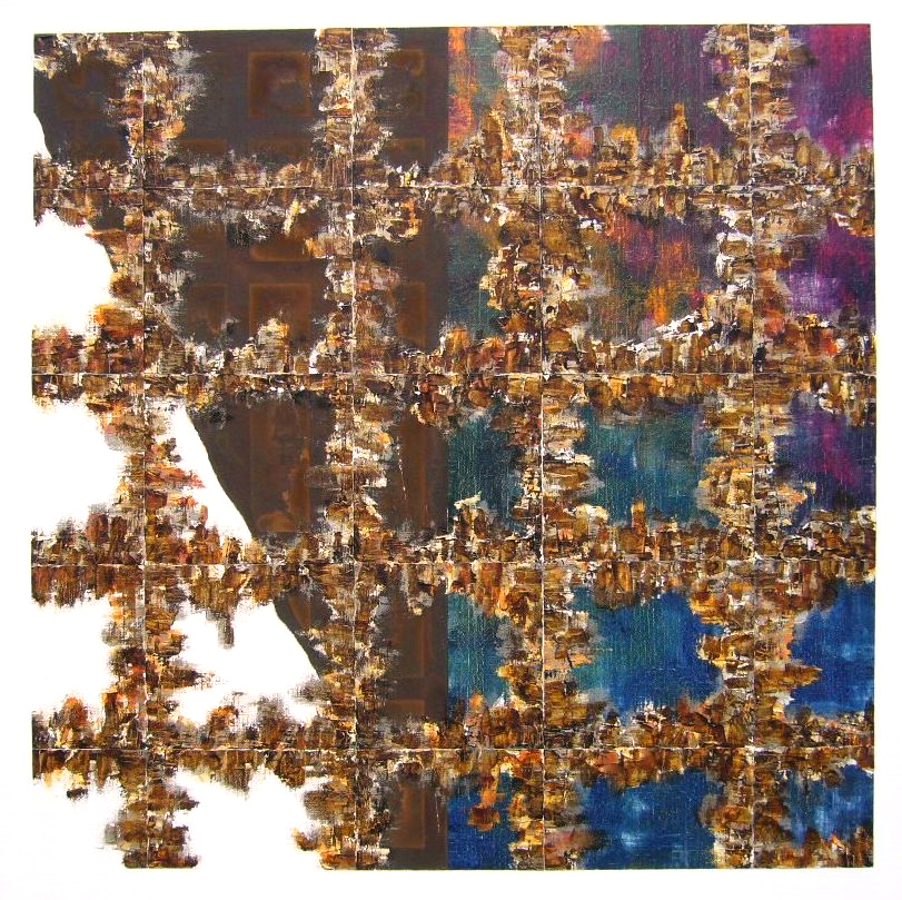 Abstract schilderij uitgevoerd in Olieverf en "Modern Options" (roest) op Linnen.