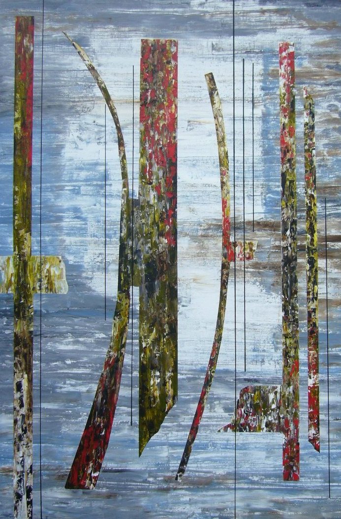 Abstract schilderij uitgevoerd in Olieverf op Linnen