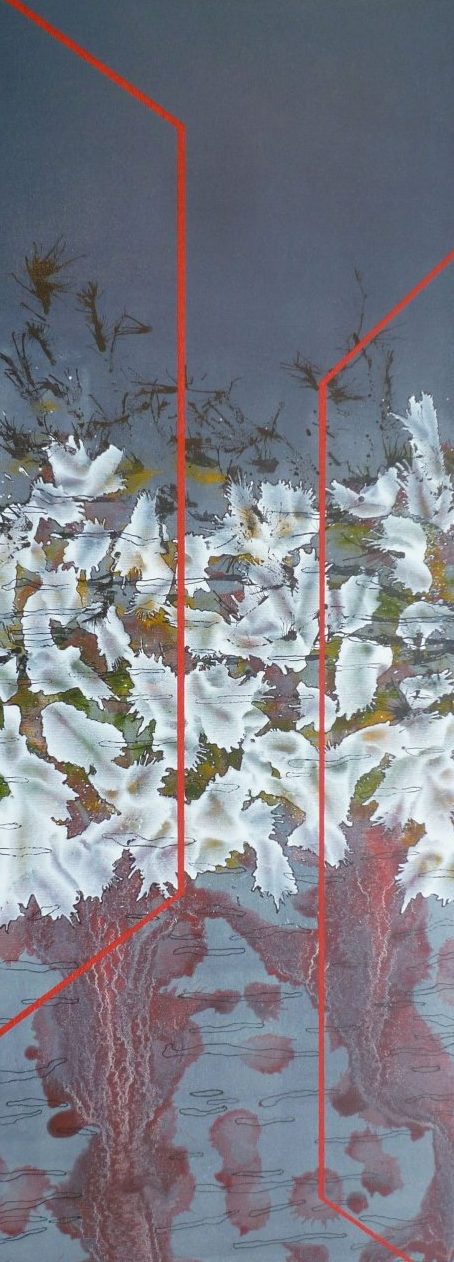 Abstract schilderij, uitgevoerd in Olieverf, Lakverf en Inkt op Linnen