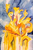 Geschilderd op zijde en ingelijst met passe-partout, onder mat plexiglas in geel frame, totale grootte inclusief de lijst is 93 cm. x 73 cm.